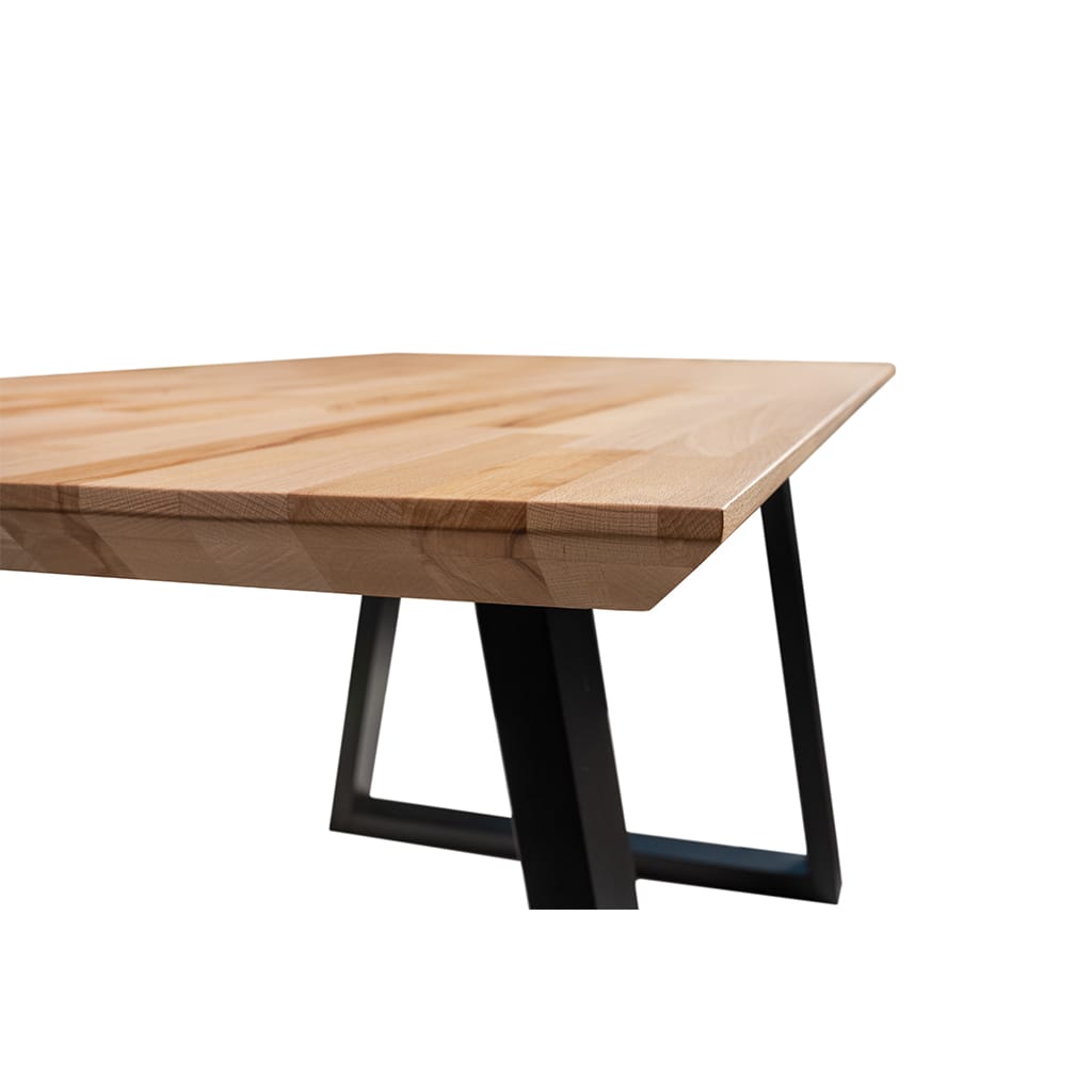 is een combinatie van elegantie en duurzaamheid. De optisch 40 mm hoge top, aangevuld met een werkelijke dikte van 20+20 mm, zorgt niet alleen voor esthetiek, maar ook voor stevigheid. Met lasergesneden metalen poten, gepoedercoat, biedt deze tafel een modern design en uitzonderlijke stabiliteit.