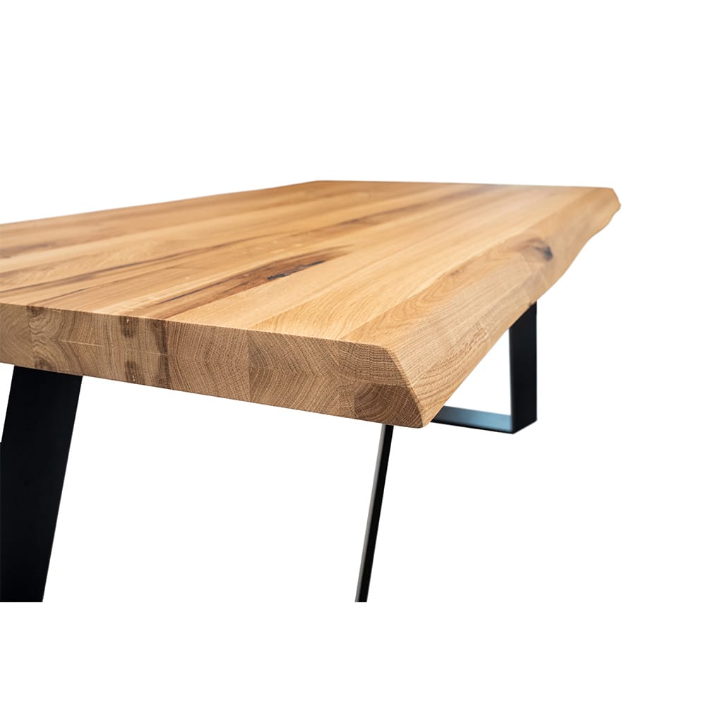 De Neapol salontafel – een echt kunstwerk in huis. Door design en functionaliteit te combineren, presenteert het een blad met een optisch uiterlijk van 40 mm, aangevuld met een werkelijke dikte van 20+20 mm. Het natuurlijke eikenhouten blad is behandeld met een olieafwerking, wat de elegantie en duurzaamheid benadrukt.
